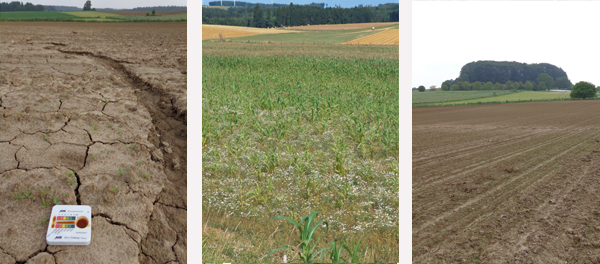 Mais (Lehnheim Hessen Juni / August 2013) Verschlämmte Böden durch Strukturschäden nach den starken Regenfällen im Frühjahr